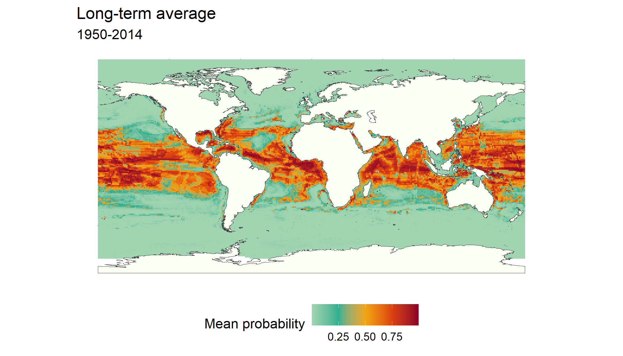 This example shows how to use the GLOSSA framework to model the suitable habitat of Thunnus albacares (yellowfin tuna) on a global scale under different climate change scenarios. We combined occurrence data (1950-2014) from the Ocean Biogeographic Information System (OBIS, https://obis.org/) with environmental predictors from the Inter-Sectoral Impact Model Intercomparison Project (ISIMIP, https://data.isimip.org/). The goal is to evaluate how habitat suitability for T. albacares may change under two scenarios: sustainable development (SSP1-2.6) and high emissions (SSP5-8.5).