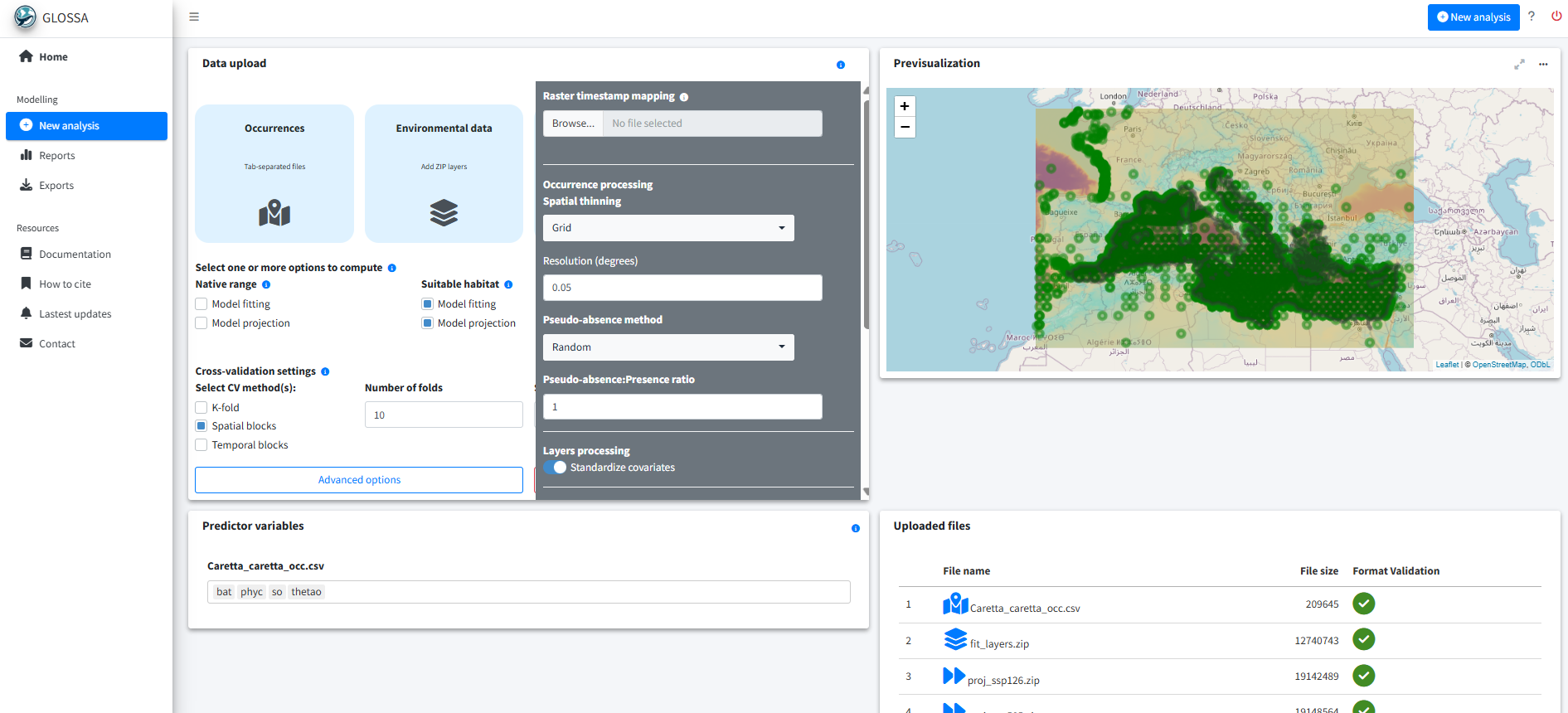 Inside the app, we upload the occurrence file for C. caretta (Caretta_caretta_occ.csv