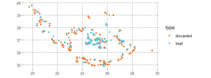 luriduscolnames(luridus) <- c("decimalLongitude","decimalLatitude","timestamp","pa")